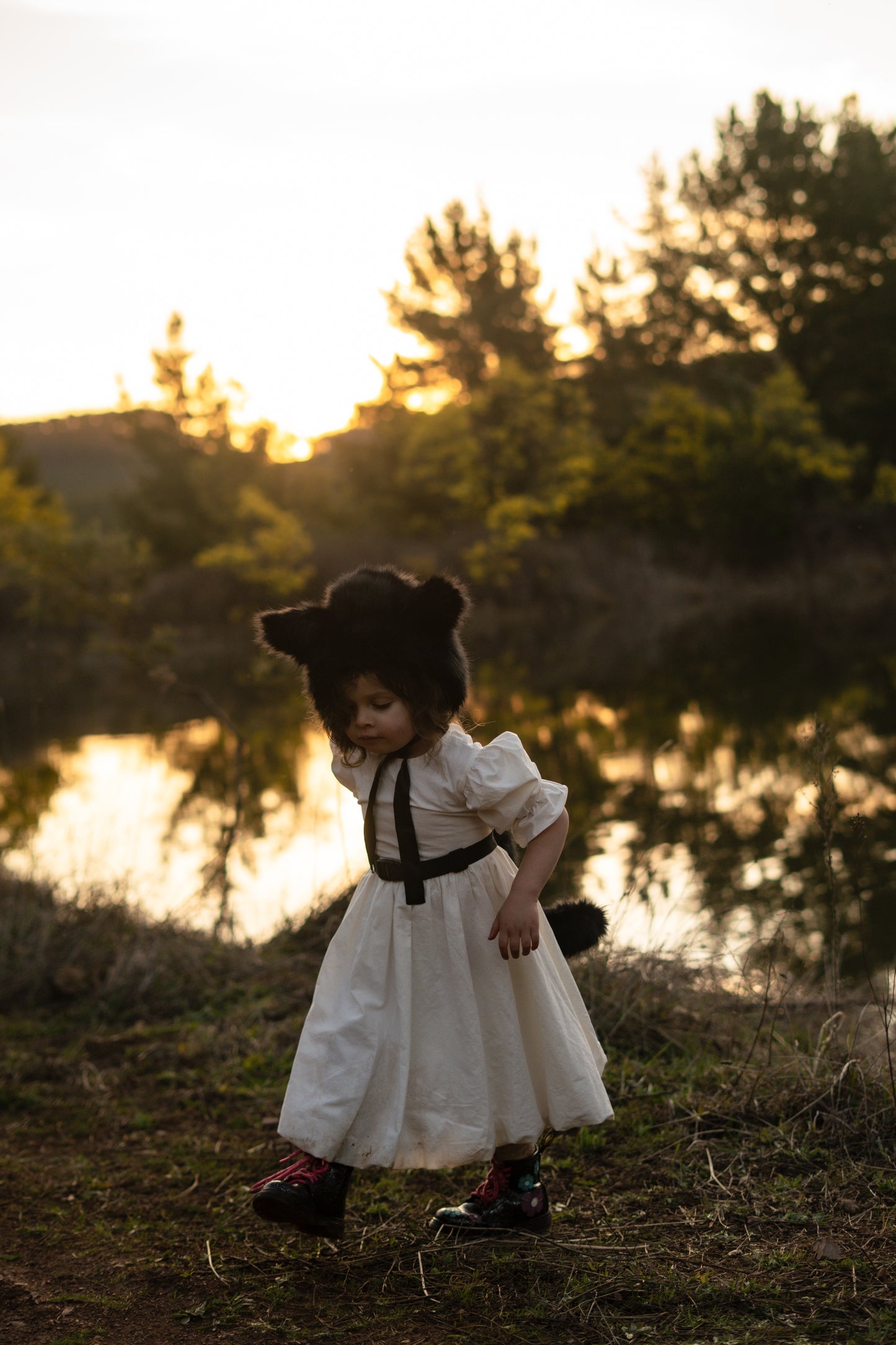 Black Cat Bonnet - Faux fur